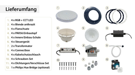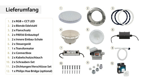 Smart Home Poollampen RGB + CCT | Philips Hue & Amazon Alexa | PAR 56